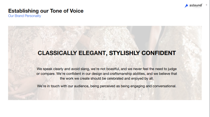 Creating a language that's uniquely yours, I introduce the brand's tone of voice and tonal values, explaining what they stand for and how they support your brand and company mission. I provide detailed, practical support to people creating content across multiple channels through tone of voice guidelines and copywriting examples.
